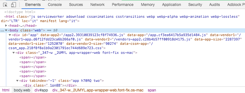 4. Si aprirà la Console con gli strumenti per gli sviluppatori e riuscirete a visualizzare il codice che genera la pagina web.