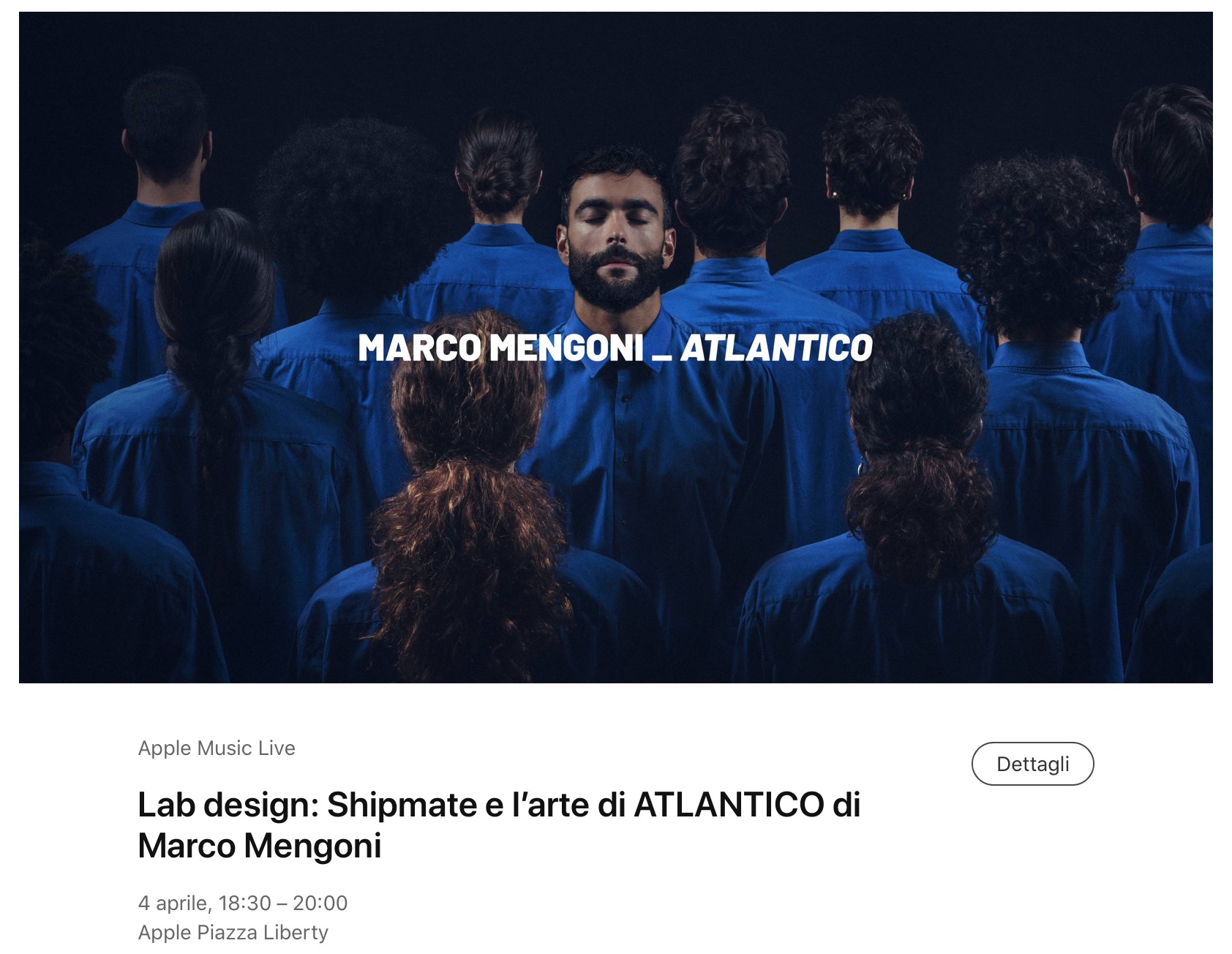 Con il suo stile originale, le collaborazioni internazionali e a poche settimane dalla partenza del suo nuovo tour, Marco Mengoni è il primo protagonista di Apple Music Live: Piazza Liberty, una nuova serie di eventi gratuiti a Milano. Lo splendido spazio di fronte al principale Apple Store della città si trasforma nella cornice ideale per ascoltare dal vivo la migliore musica del momento. Non perdere questa occasione: registrati per partecipare!Apple Music Live: Piazza Liberty
