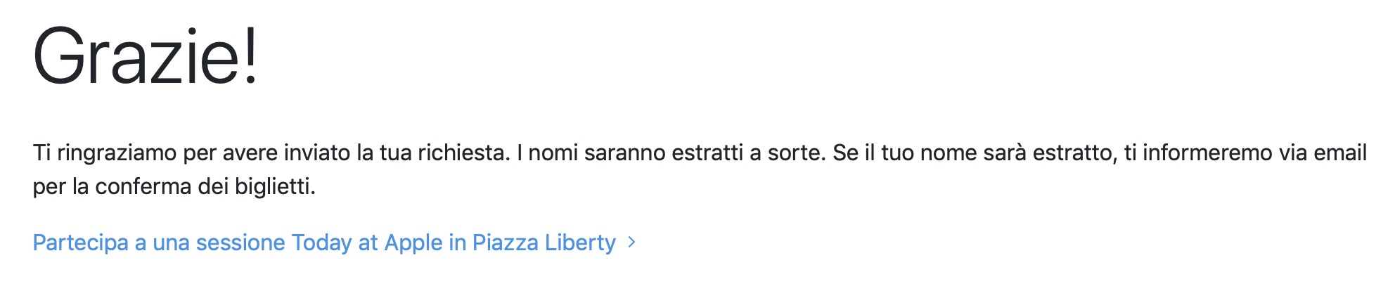 Una volta effettuata l’iscrizione Apple effettuerà un sorteggio per selezionare i partecipanti all’evento, che verranno notificati tramite mail.