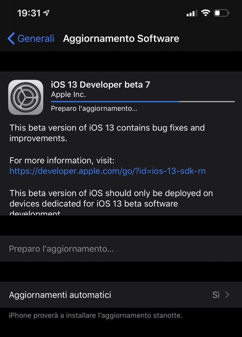 Apple ha da qualche minuto rilasciato a tutti gli sviluppatori iOS 13 e iPadOS beta 7.
