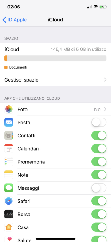 Su iCloud è possibile salvare tantissime cose, anche l’intero contenuto del vostro iPhone ma Apple offre soltanto 5GB di spazio gratuito per l’archiviazione dei file degli utenti, quindi (a meno che non abbiate effettuato un upgrade a pagamento) dovrete scegliere selettivamente e con intelligenza i dati da salvare in iCloud e quelli da evitare. Noi vi consigliamo di tenere su iCloud soltanto la Rubrica, i Calendari, i Promemoria, le Note, i Messaggi, Safari, Casa, Salute, Wallet, Game Center, Siri, Portachiavi ed iCloud Drive. Vi consigliamo invece di tenere disattivate le Foto ed i Video perchè potrebbero farvi sforare lo spazio di archiviazione e compromettere il backup.