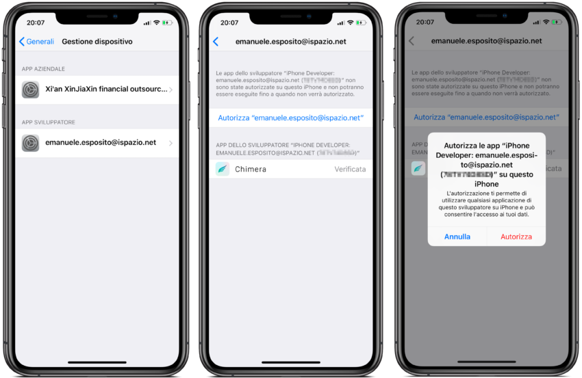 - Se non si dispone di un account sviluppatore, è necessario autorizzare l’app Chimera ogni sette giorni.