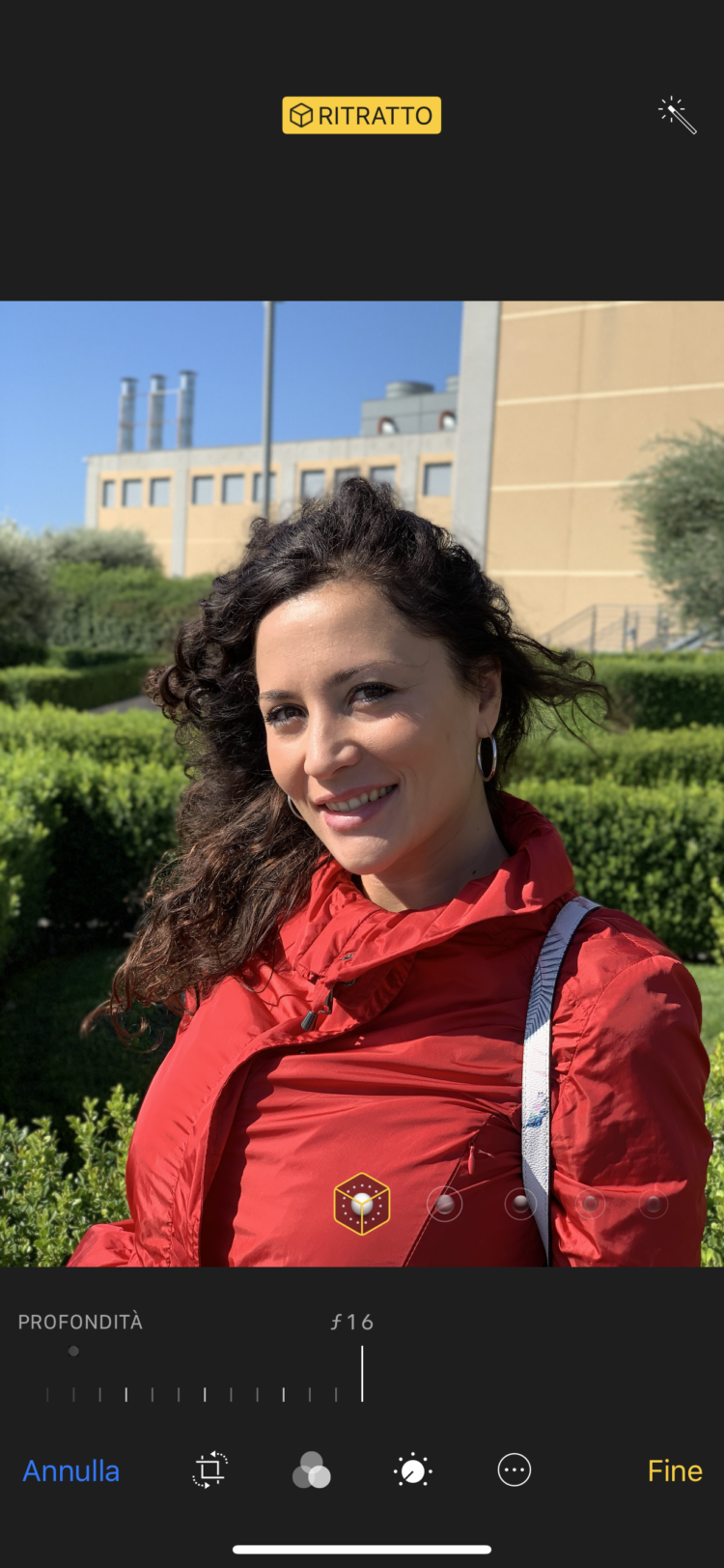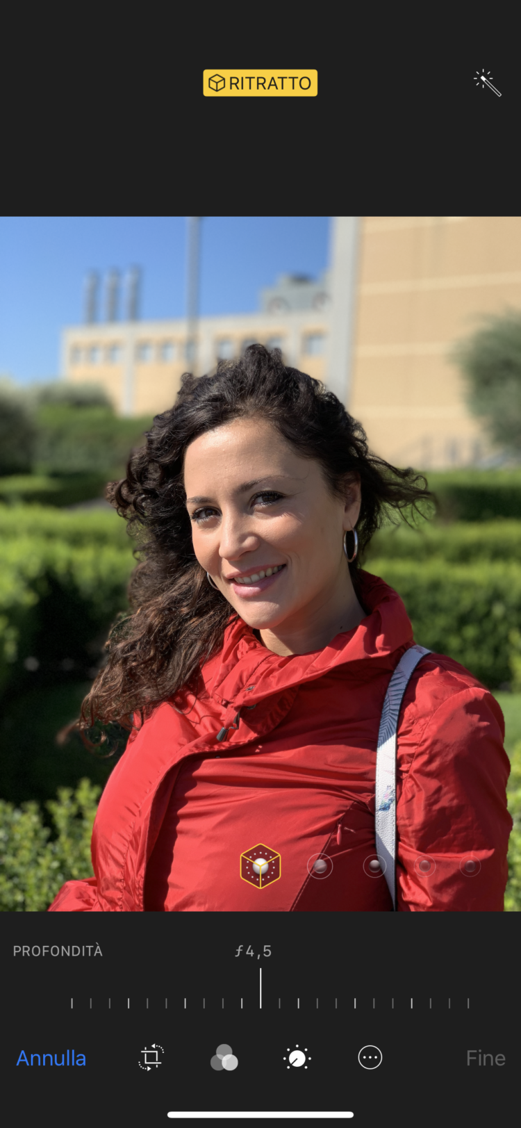 Dopo aver scattato una foto in modalità ritratto, apriamolo e tocchiamo il tasto Modifica. Oltre a poter cambiare le luci e gli effetti da studio, comparirà una levetta nella parte inferiore con scritto Profondità.