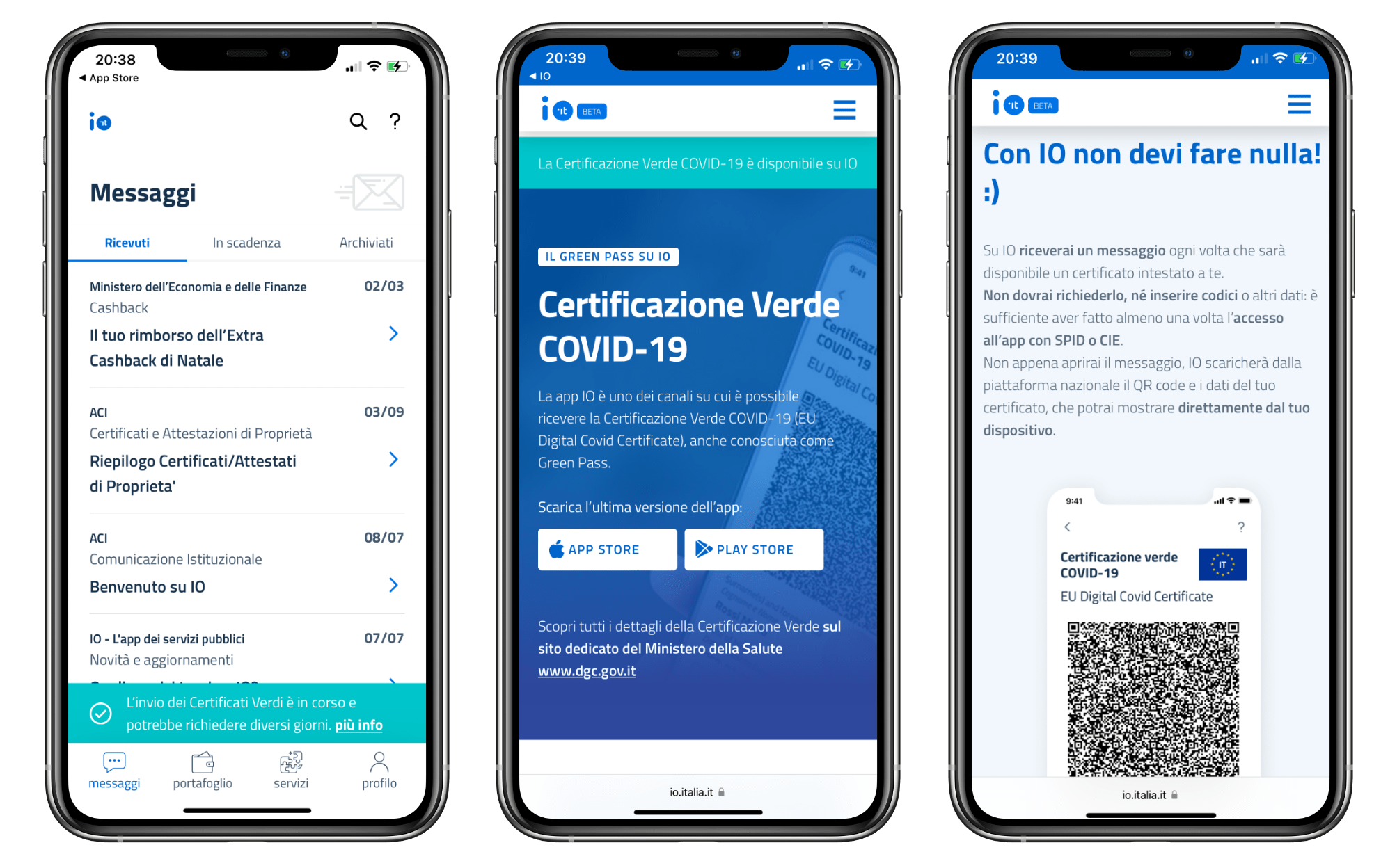 Il “Green Pass” con il Certificato Vaccinale COVID-19 si ottiene nell’app IO e nell’app Immuni