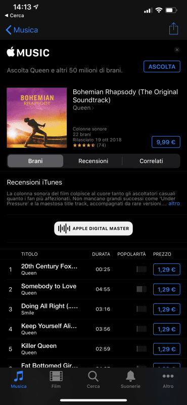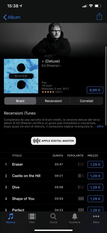 37. Su iTunes, nella visualizzazione è stato aggiunto il badge “Apple Digital Master” quando i brani sono stati masterizzati appositamente per iTunes.