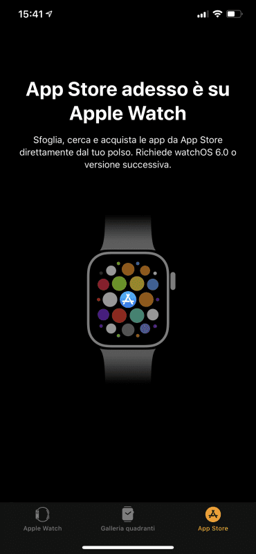 39. Modificata la schermata che viene visualizzata sull’app Watch, nel menù App Store, che invita a consultarlo direttamente sul Watch con watchOS6.