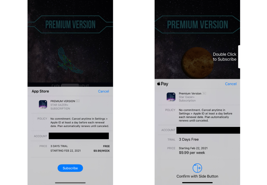 La schermata du acquisto che appare quando un’app viene acquistata ora separa le informazioni di prova dell’app dal prezzo dell’abbonamento e mette in primo piano le quote mensili utilizzando un carattere più grande.
