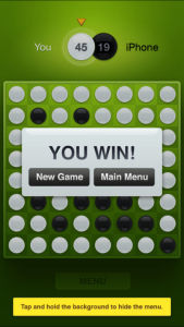 Reversi o Othello è uno dei giochi da tavolo più popolari e avvincenti mai creati questa verione per iPhone è un ottimo passatempo. Puoi giocare contro l’IA in modalità giocatore singolo, giocare contro un avversario nelle vicinanze in modalità 2 giocatori, o giocare contro qualsiasi giocatore del mondo in modalità Gioco online. Usa tattiche intelligenti, sfida le tue abilità strategiche e non annoiarti mai più!
