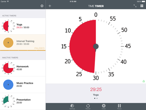 Pluripremiato timer visivo per iPad. Uno strumento utile, pratico, dal design accattivante. Il timer è progettato per “mostrare” il passare del tempo attraverso l’uso del suo esclusivo disco rosso che scompare con il passare del tempo, il che rende il trascorrere del tempo un concetto visivamente comprensibile. Adatto per il lavoro o a casa è semplice da utilizzare!