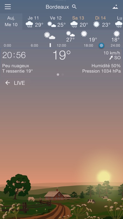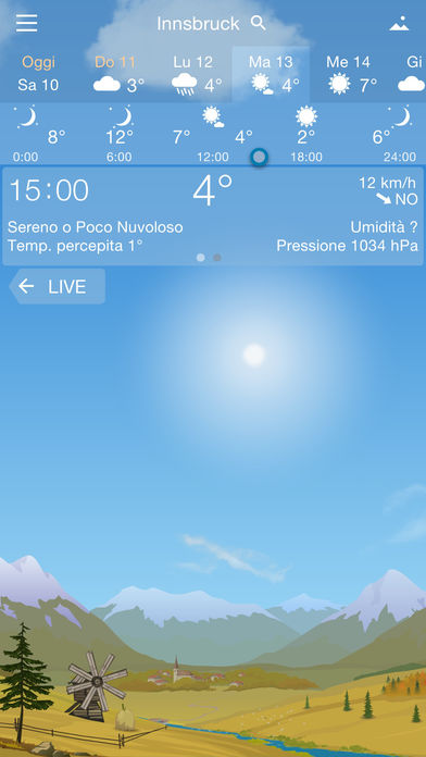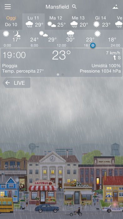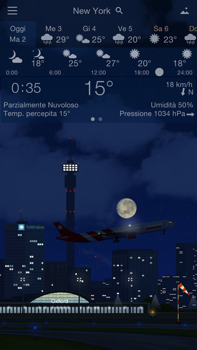 “YoWindow” è una applicazione meteo diversa dalle altre, lo sfondo rispecchia il meteo del momento se piove, pioverà sullo sfondo se c’è il sole lo sfondo sara sereno! Il tramonto e l’alba sono in tempo reale e basta trascinare il dito sullo schermo per andare avanti nel tempo per avere un idea della previsione per la giornata.