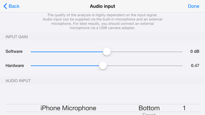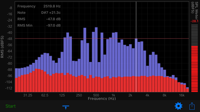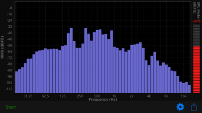 Utile applicazione analizzatore RTA di ottava in tempo reale. Ti dà una rappresentazione visiva di un segnale acustico. Può essere usato per misurare la risposta in frequenza di apparecchiature audio o per analizzare i suoni di strumenti musicali.