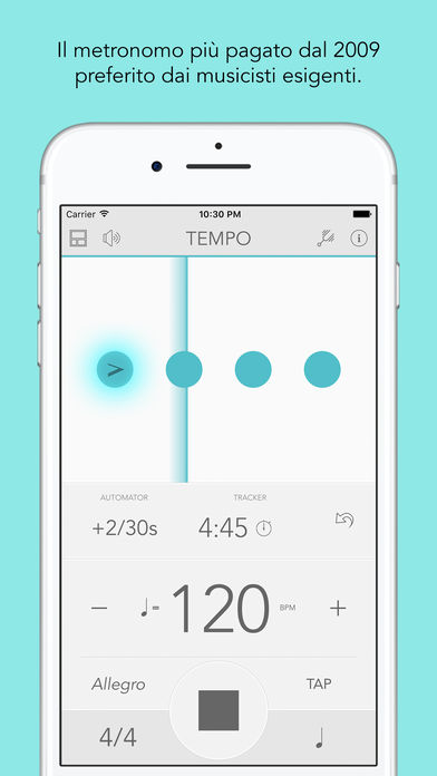 Interessante app appartenente alla categoria “musica”. Un metronomo che risulta essere il più venduto e preciso su App Store. Il suo modulo è stato riscritto completamente per garantire massima precisione e stabilità. Ciò la rende un utile strumento per le esibizioni dal vivo.