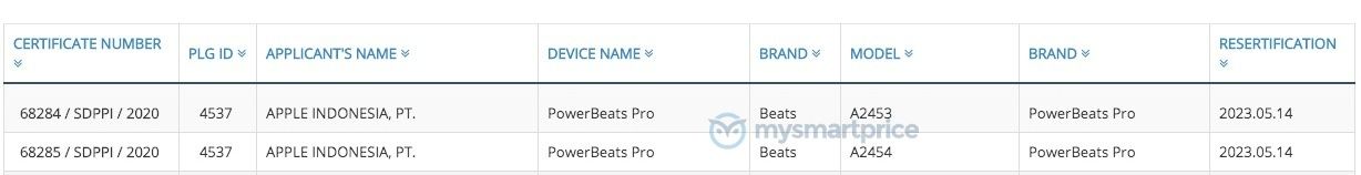 La grande novità qui è che la certificazione rivela il nome del prodotto. Secondo la certificazione, gli imminenti auricolari davvero wireless di Apple e il successore di PowerBeats Pro saranno semplicemente chiamati “PowerBeats Pro”. Non ci sono tag “2” o “2020” associati al nome come tutti si aspettavano.