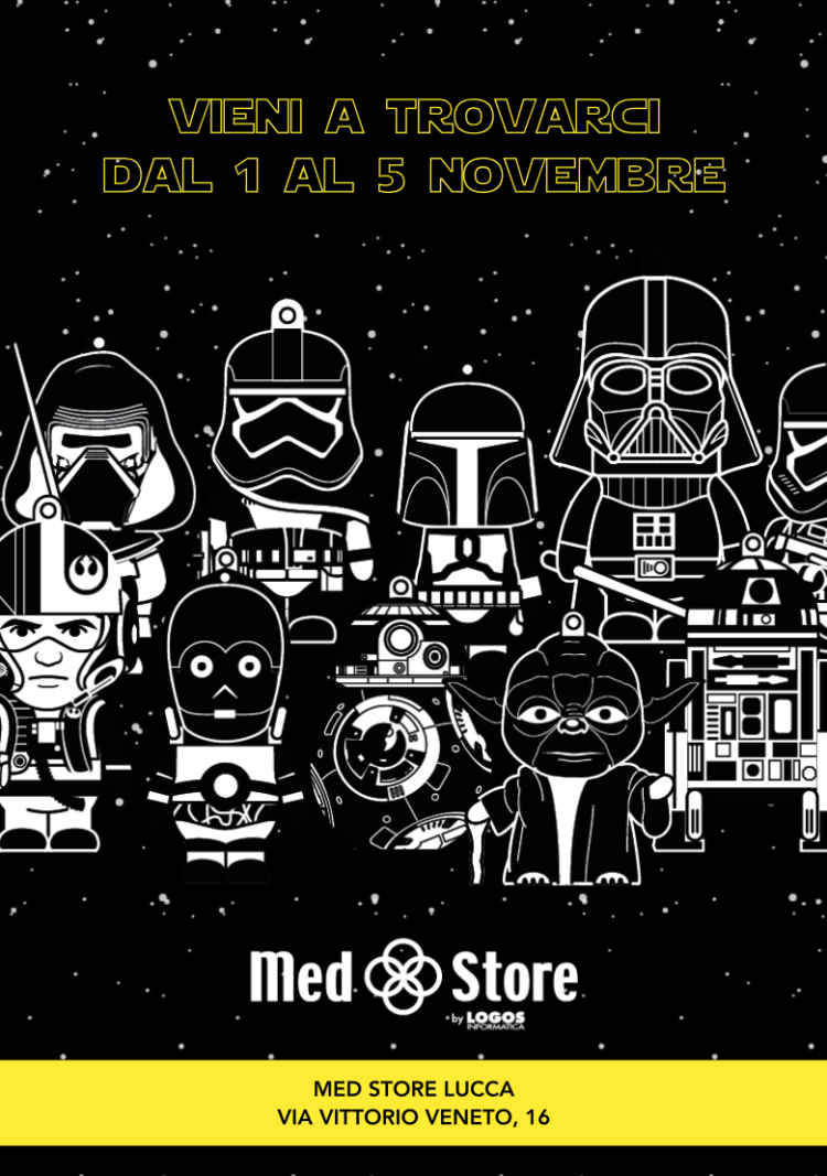 Ma non finisce qui, il punto vendita Med Store in via Vittorio Veneto 16 in pieno centro storico a Lucca, si trasforma in occasione del Comics e rivoluziona il proprio aspetto diventando “Med Wars” il set perfetto per le Guerre Stellari con quattro aree tematiche: Drone Cage, Robot Lab, Sphero Maze e spazio Creativity.