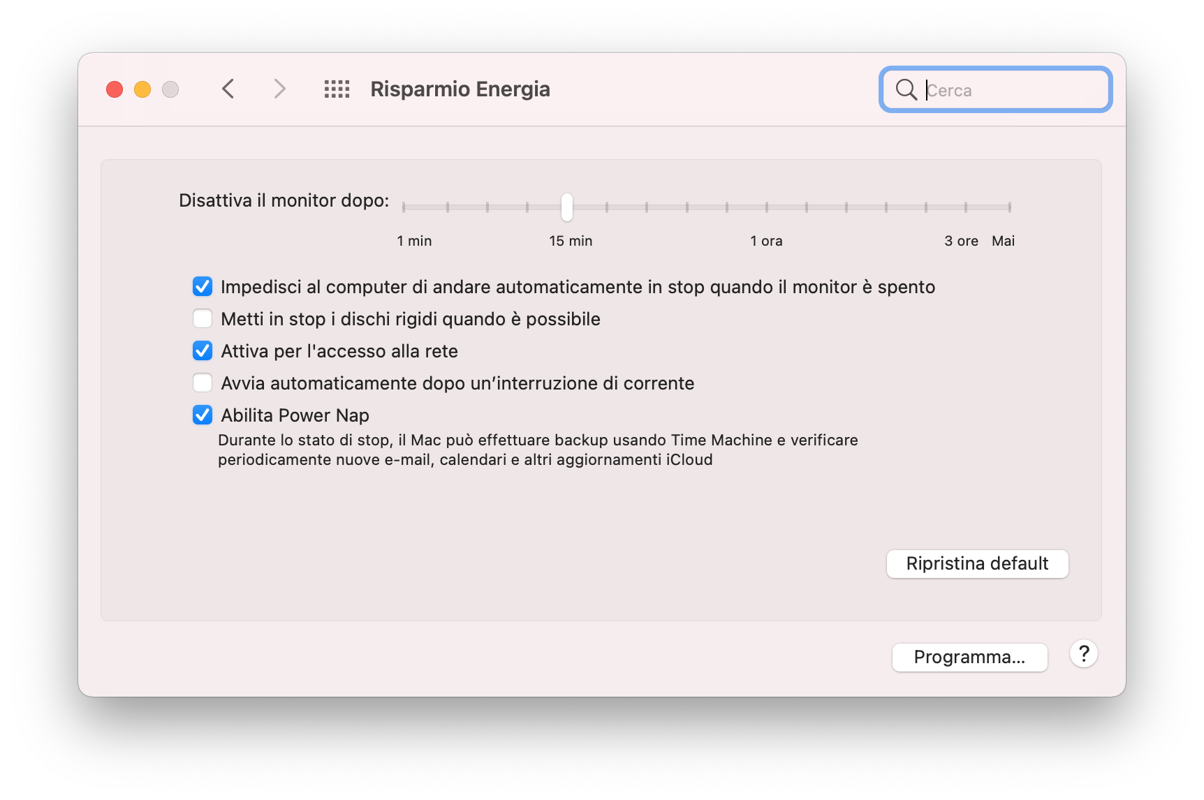 Apple conosce il problema e potrebbe risolverlo con un aggiornamento software. In Italia per il momento sono pochi i Mac Mini venduti ma se tra voi c’è qualche utente afflitto da questo problema, può aggirarlo semplicemente evitando che il Mac Mini vada in sospensione automatica anche se non è la scelta ideale. Per farlo, aprite le Preferenze di Sistema, Risparmio Energetico e regolate le prime due opzioni.