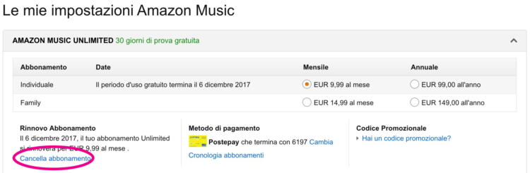 Se il vostro scopo è soltanto quello di provare il servizio mentre è in fase gratuita, senza ottenere alcun addebito, allora entro 30 giorni dovete disattivare il rinnovo automatico dell’abbonamento. Ecco come fare: