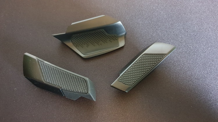 Dal tradizionale poggia pollice ad aletta a supporti meno sporgenti ma più allungati e allo stesso tempo ruvidi, garantendo una comoda ed ergonomica impugnatura antiscivolo, lo stesso vige per il lato opposto, a differenza del dorso del Mouse che risulta liscio e piacevole al tatto.