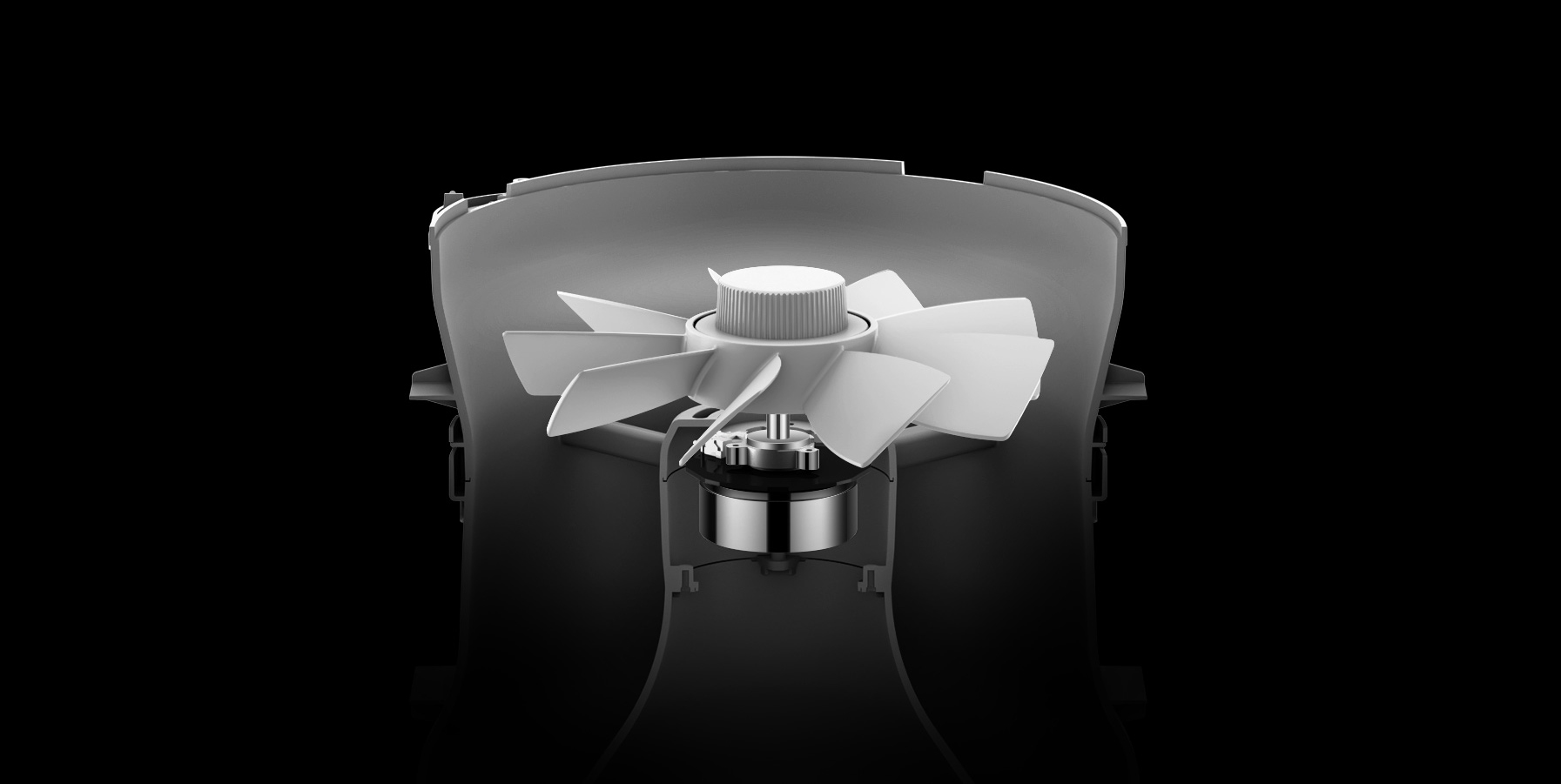 In base all’analisi fornita dal laser, che si traduce con un numero visibile direttamente sul display integrato, l’intera parte inferiore inizierà ad aspirare l’aria in maniera più o meno forte e veloce, da ogni direzione a 360°, attraverso i tantissimi fori.