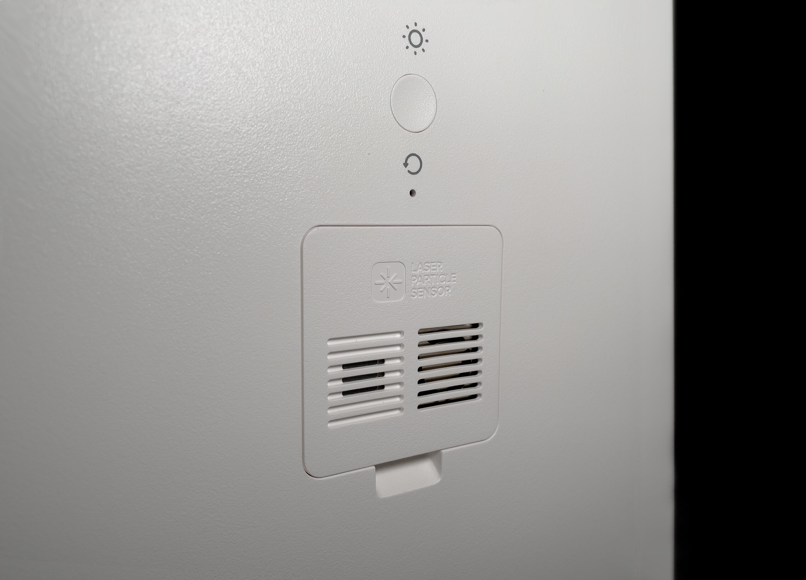 In maniera molto semplificata, c’è un laser posizionato sul retro del purificatore che emette un fascio di luce continuo (impercettibile ad occhio umano) che analizza tutto quello che si muove nell’aria.