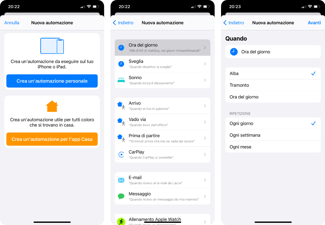 Non appena entrambi i comandi saranno stati installati, non vi resta che creare un’automazione, affichè il programma possa eseguirli automaticamente all’orario dell’albe e del tramonto.