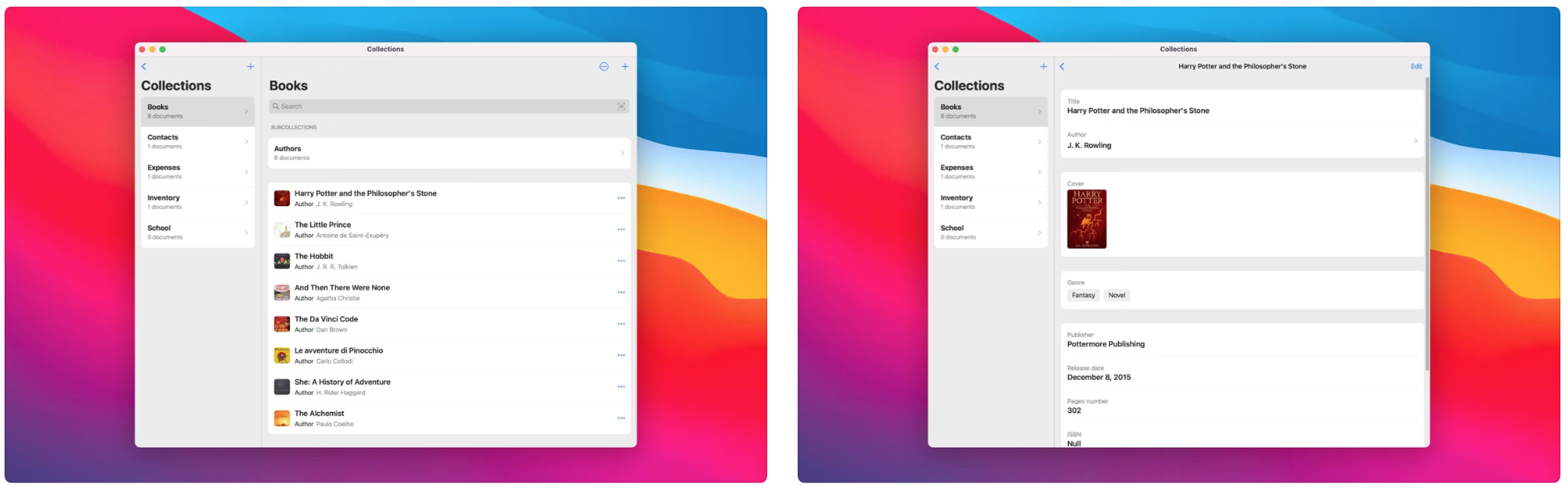 Si possono creare delle sotto-raccolte per organizzare ancora meglio gli elementi e le liste per rappresentare il genere per un libro o uno stato come “Disponibile” o “Esaurito” per un oggetto nell’inventario.