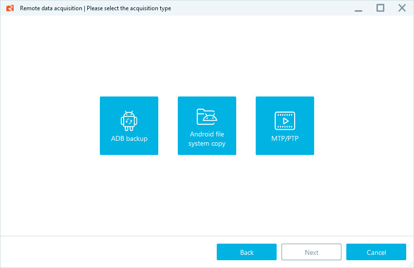 Per quanto la scelta sia sicuramente ampia, in merito alla copia forense di dispositivi mobile ci si scontra subito con la più grande limitazione di questo strumento: le tipologie di acquisizione disponibili.