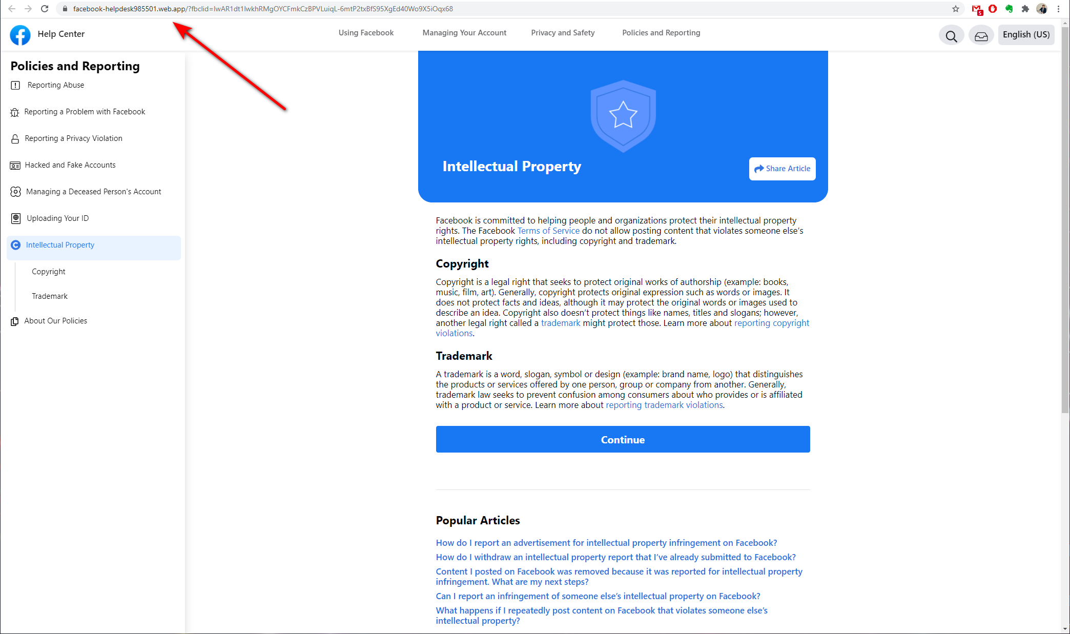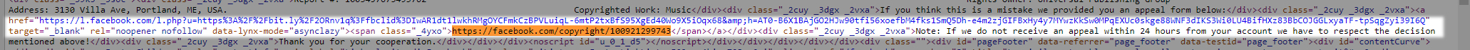 Anche qui, ad un occhio poco tecnico, tutto sembra corretto: viene riportato il numero del caso di violazione del Copyright, l’autore del diritto d’autore ed una serie di informazioni, fino al link con il quale è possibile appellarsi o comunque ripristinare l’anomalia (fasulla) all’interno del proprio profilo/pagina. Peccato che, questa volta, facendo click su questo link, si venga riportati ad una pagina esterna a Facebook e per la precisione, l’utente viene riportato in una pagina di phishing, nella quale verranno chiesti una serie di dati personali/sensibili e la relativa password del profilo!