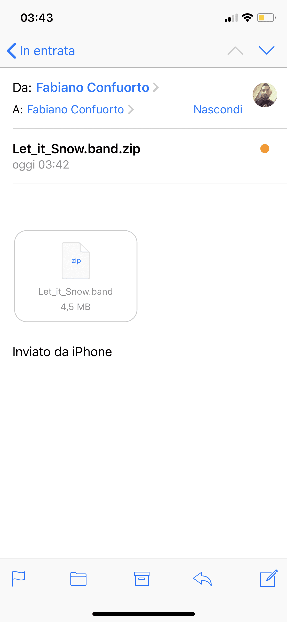 2. Inviate la Mail a voi stessi e la riceverete immediatamente con il file .zip in allegato