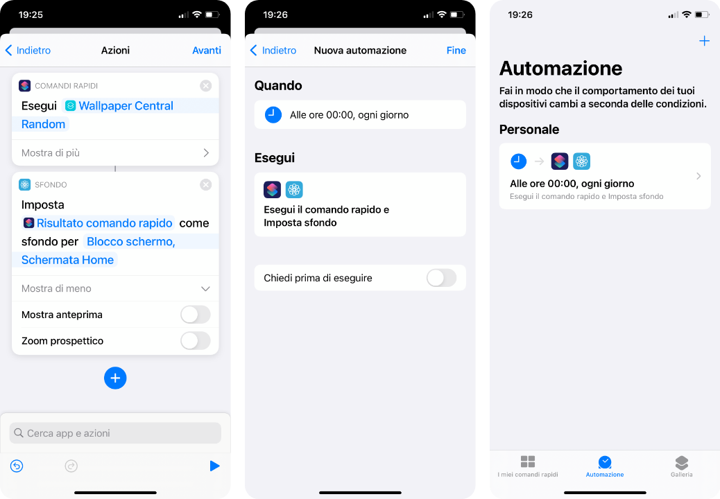 Abbiamo terminato. D’ora in poi, il vostro iPhone cambierà lo sfondo automaticamente ogni giorno, all’orario che avete indicato all’inizio dell’automazione. Può sembrare un procedimento lungo e complesso ma è più facile a farsi che a dirsi e poi andrà fatto soltanto una volta.