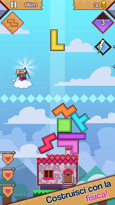 Sfida gravità e fisica con intuitivi comandi single touch e divertiti con la costruzione di assurde torri aiutato da potenti incantesimi, mentre altri maghi dispettosi come Big Barry, Harry Hawk ti complicheranno la vita. Un gioco semplice ma divertente che ci ripropone i clasici blocchi di “Tetris”.
