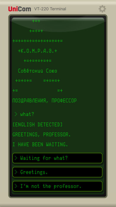 Ispirato al film cult anni 80, “Warsgame”, vi troverete ad interagire con un intelligenza artificiale sovietica in disuso dal 1985, programmata e mai aggiornata non è a conoscenza della fine della guerra fredda, e può essere collegato al secondo più grande arsenale nucleare del mondo. Un’opera di fiction interattiva da giocare su iPhone o Apple Watch che si svolge attraverso le conversazioni con l’IA e le scelte che voi farete. Che cosa potrebbe succedere?!