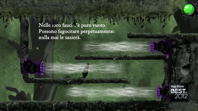 Unisciti al protagonista di questo gioco nel suo viaggio alla ricerca di sé, mentre tenta di fuggire dalla sua inevitabile maledizione. Il primogenito è scaturito dal Nulla più assoluto. Venuto alla luce abbandonando il Vuoto, egli intraprenderà una lunga odissea durante la quale imparerà a sfruttare i colori che lo circondano, apprendendo potenti abilità: ma il prezzo che dovrà pagare sarà altissimo. Il vuoto deve essere uno, lo reclama e non smetterà mai di braccarlo, distruggendo qualsiasi cosa gli si pari innanzi. Per sopravvivere, il Born sarà costretto a condannare la terra su cui cammina, facendola svanire per sempre. Un interessante gioco con una grafica particolare, un gameplay “old School” ispirato ai classici del videoludo ma completamente rivisto per le interfacce tattili.