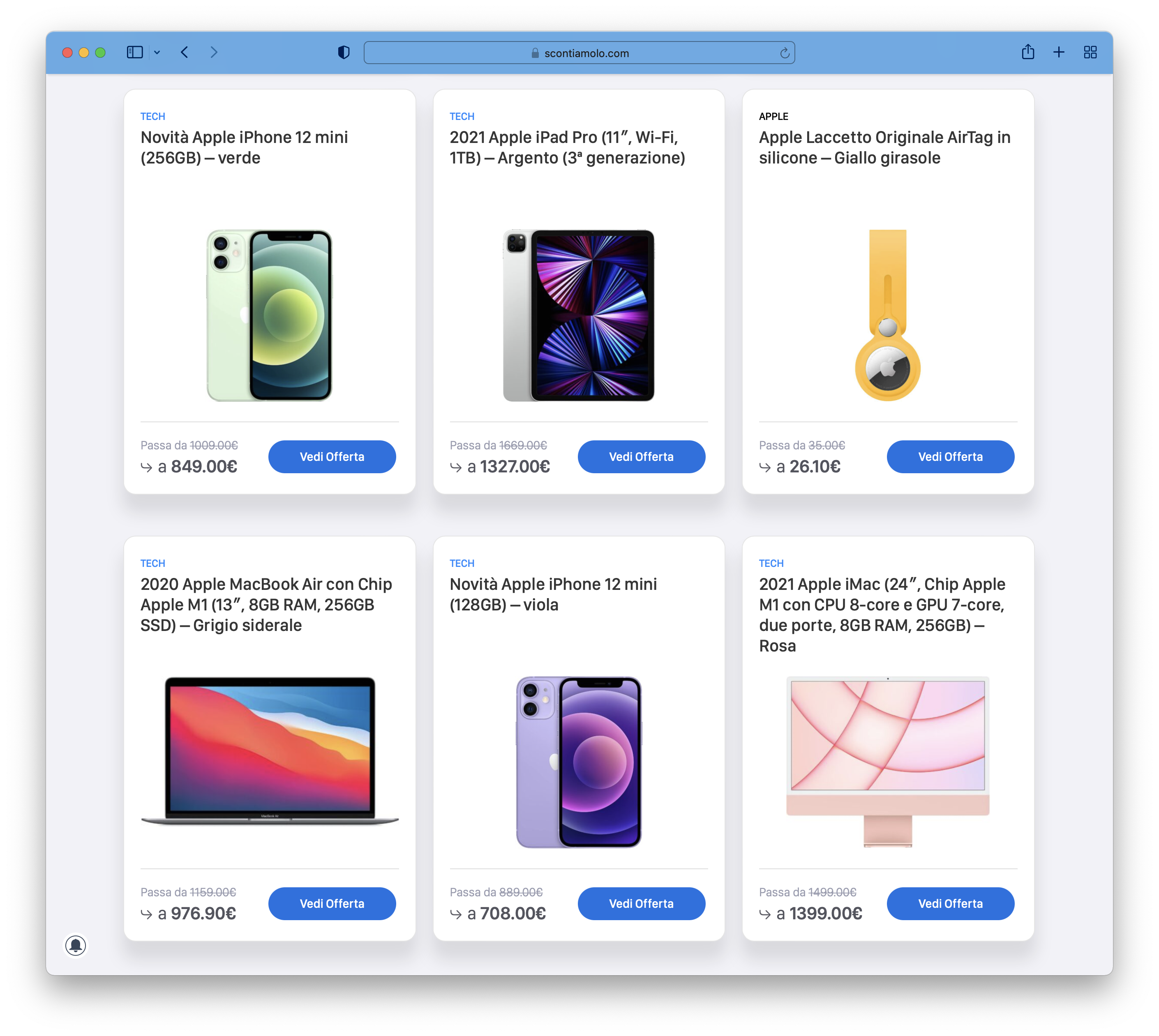 Siamo sempre più abituati ad utilizzare lo smartphone durante tutto il giorno ed ormai la grafica “mobile” è quella più familiare e comoda da utilizzare ovunque. Abbiamo quindi deciso di elencare tutti i prodotti in offerta attraverso delle “Card” simili a quelle che vediamo nelle varie applicazioni native di iOS.