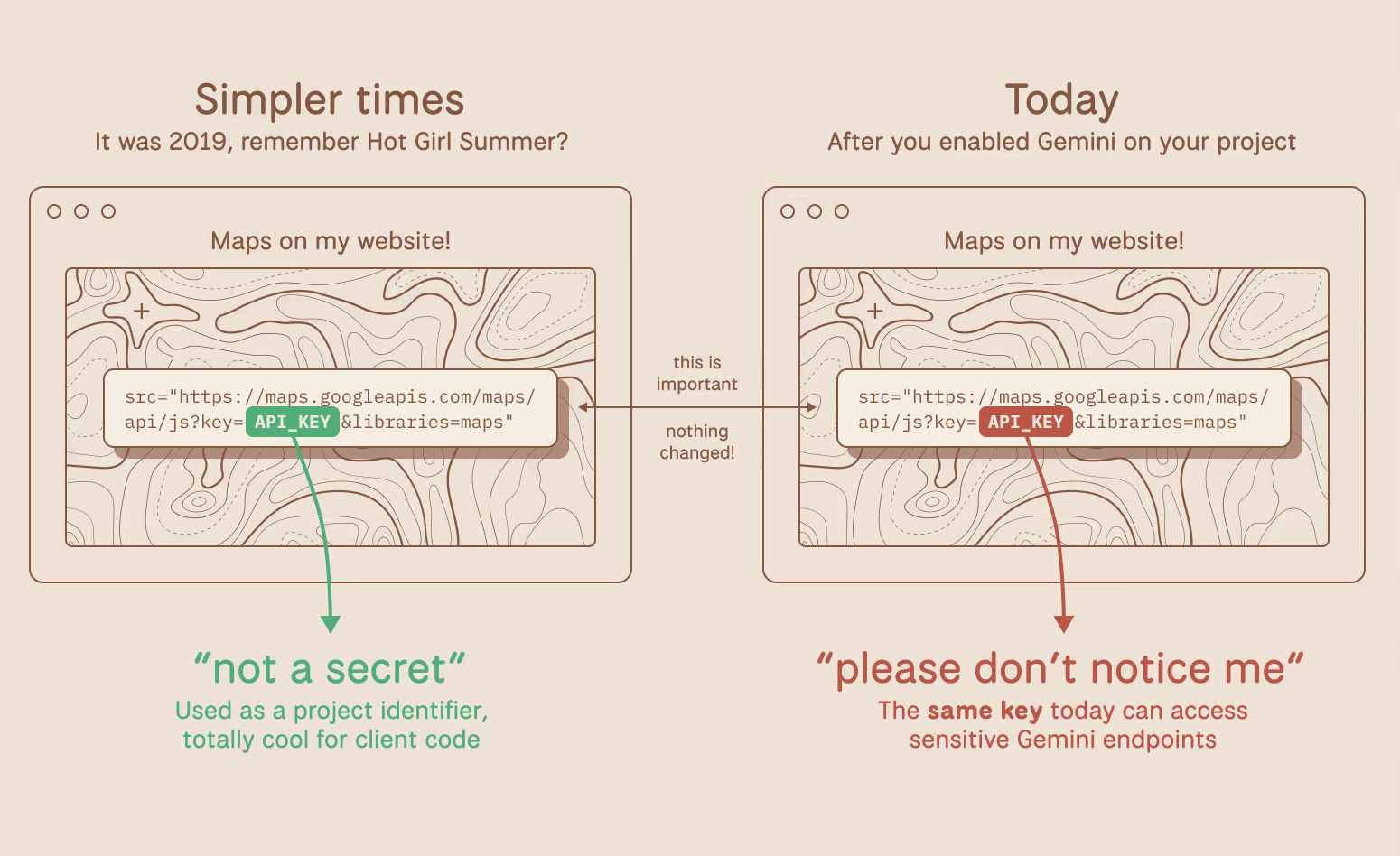 Il risultato è una vera espansione retroattiva dei privilegi: una chiave nata come token “benigno” per un widget di mappa può trasformarsi in credenziale capace di interrogare risorse AI associate allo stesso progetto.