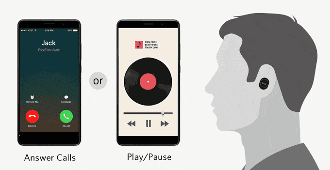 È presente un tasto fisico su ogni auricolare, con il quale è possibile avviare la riproduzione di un brano oppure rispondere o terminare una chiamata.