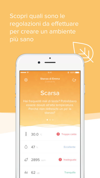 • Sensore di CO2: Controlla il livello di anidride carbonica presente nella stanza. Se il livello è troppo alto, significa che c’è poco ossigeno e vi conviene arieggiare la camera