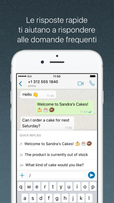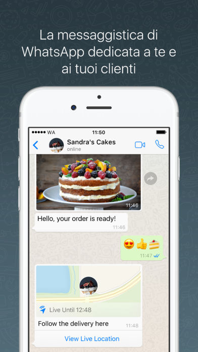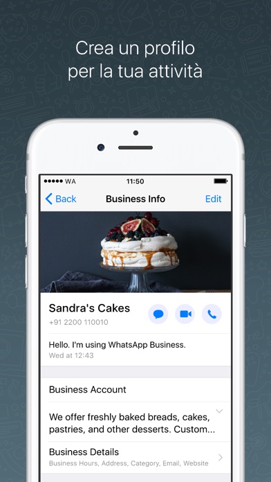 Oltre alle funzioni disponibili su WhatsApp Messenger, WhatsApp Business include: